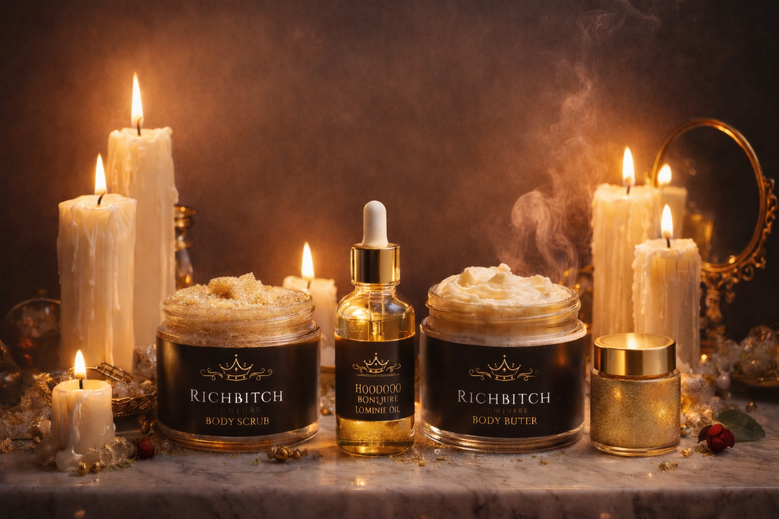 Luxury spelled body care rituals are designed to turn everyday body care into intentional hoodoo work. Learn who each ritual is for and how to use body scrubs, glazes, shimmers,...