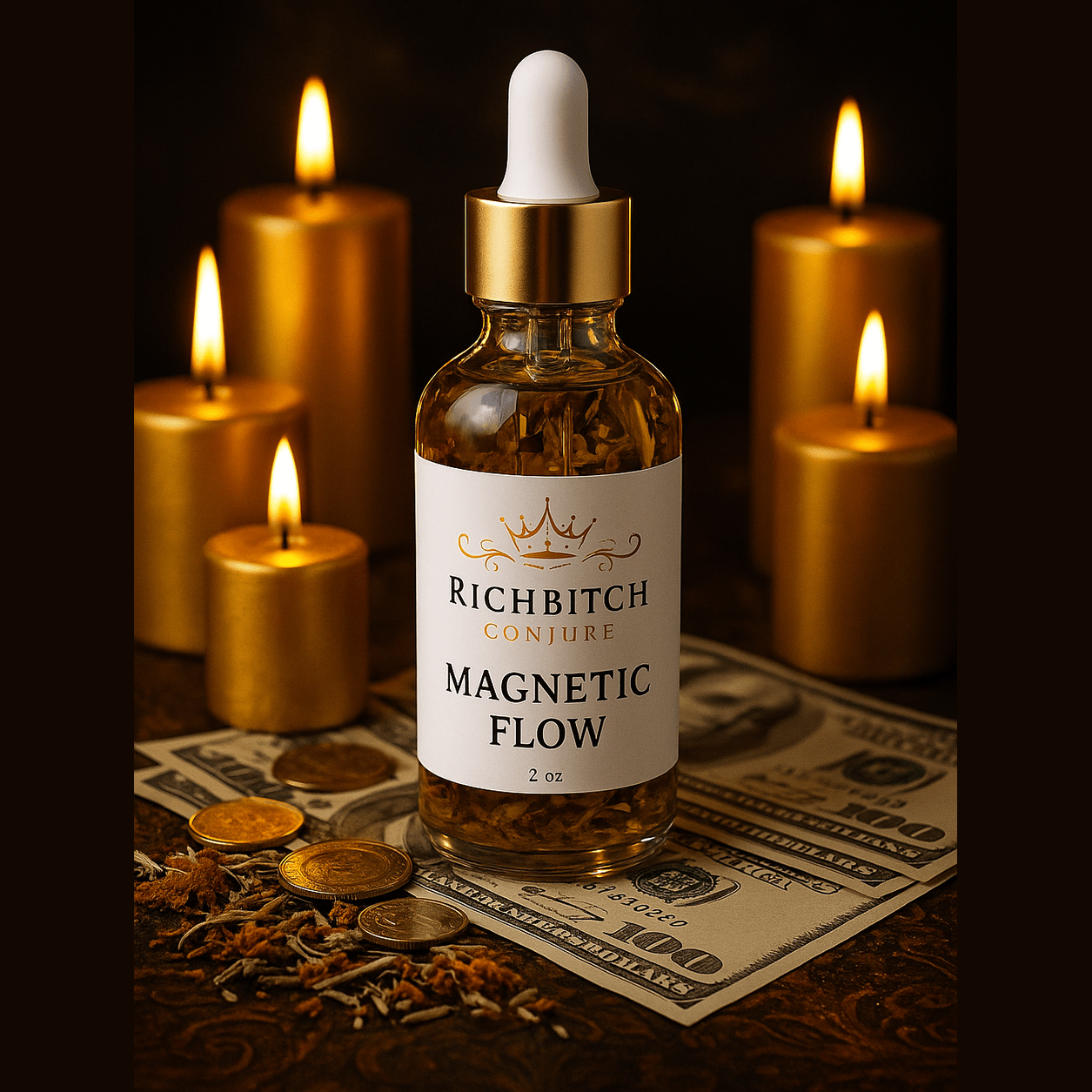 Rich Bitch Conjure's Magnetic Flow Conjure Oil – Unblock Money Flow and Attract Abundance